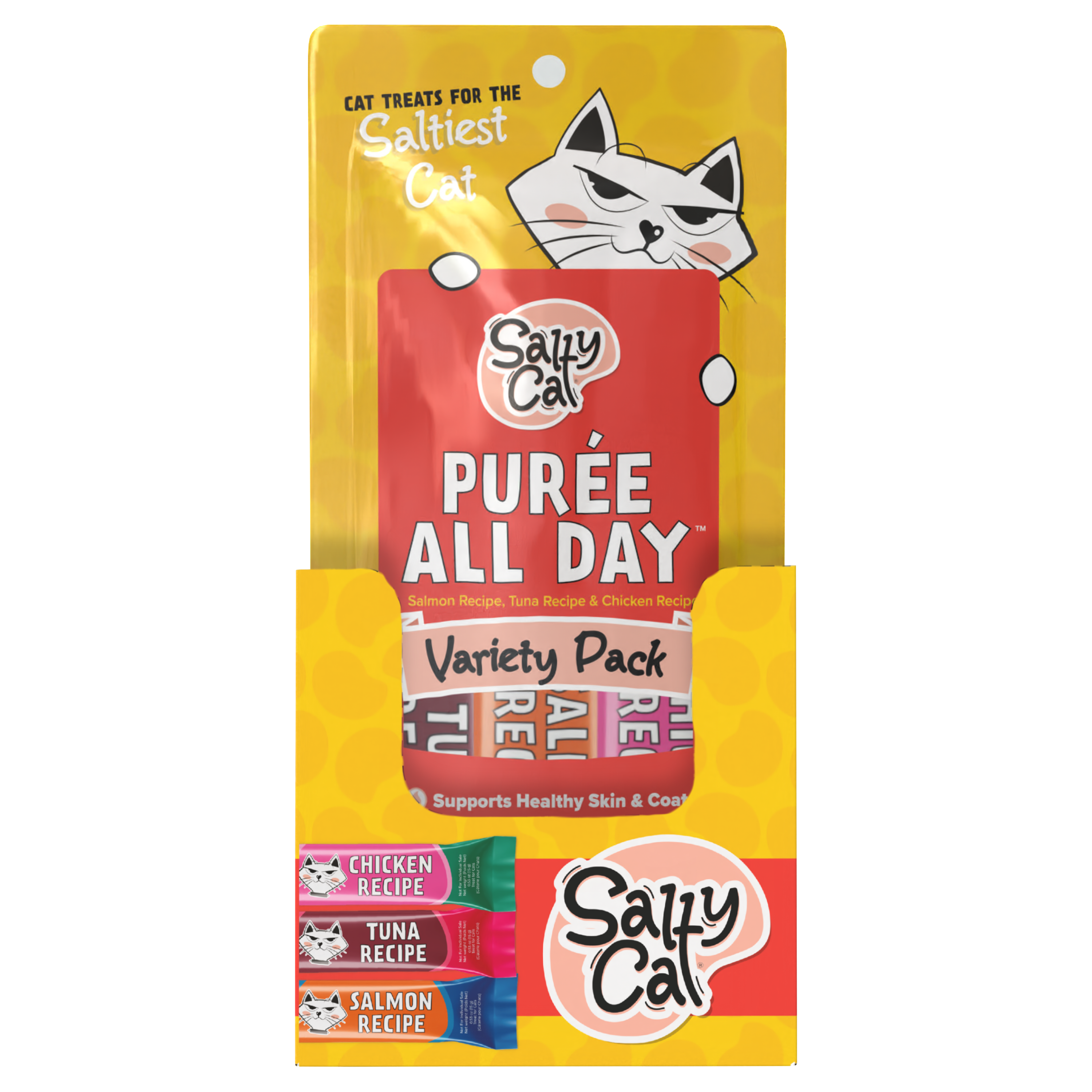 Salty Cat Purée All Day Variety Pack Natural Cat Treats, 3 x 15g tubes (12 Packs)