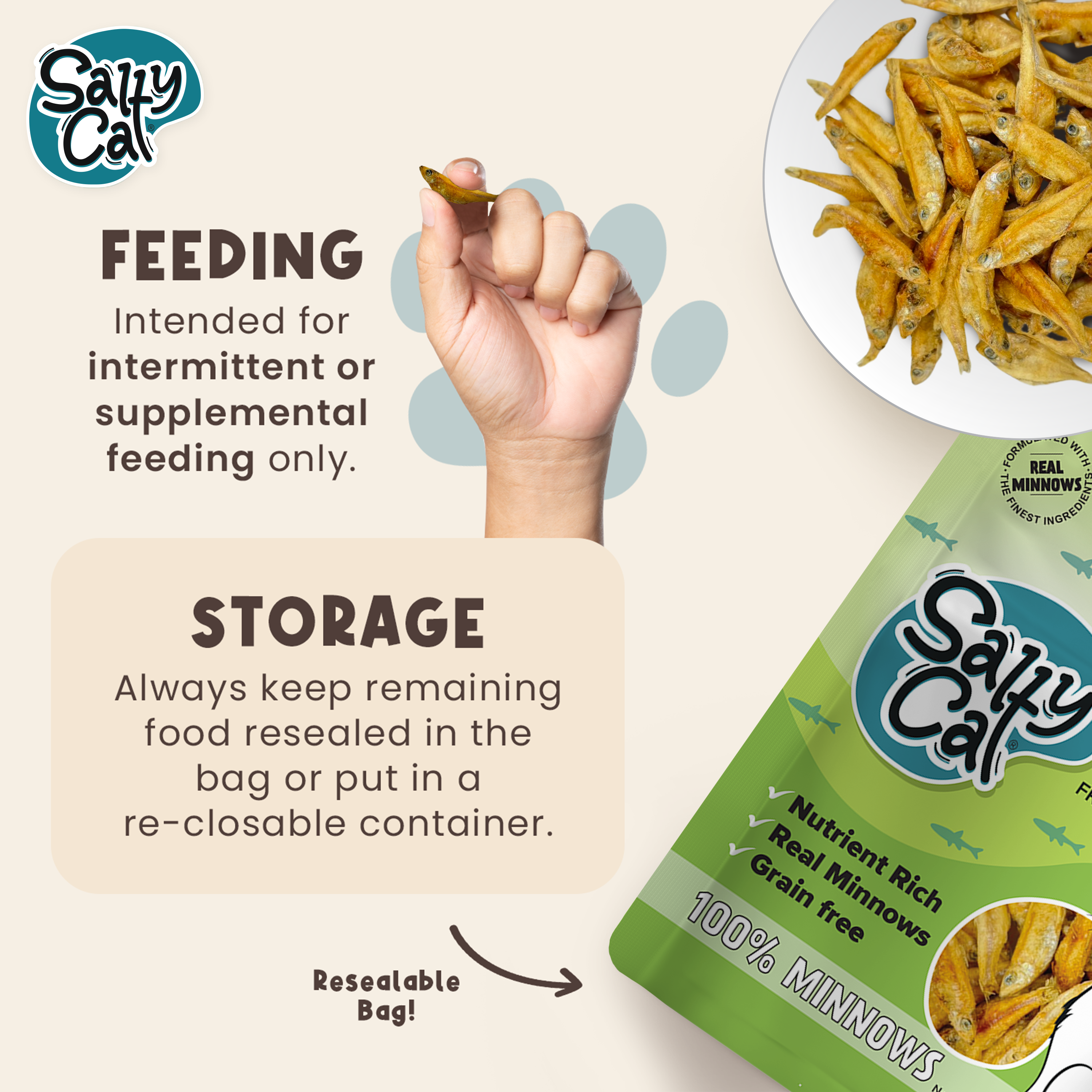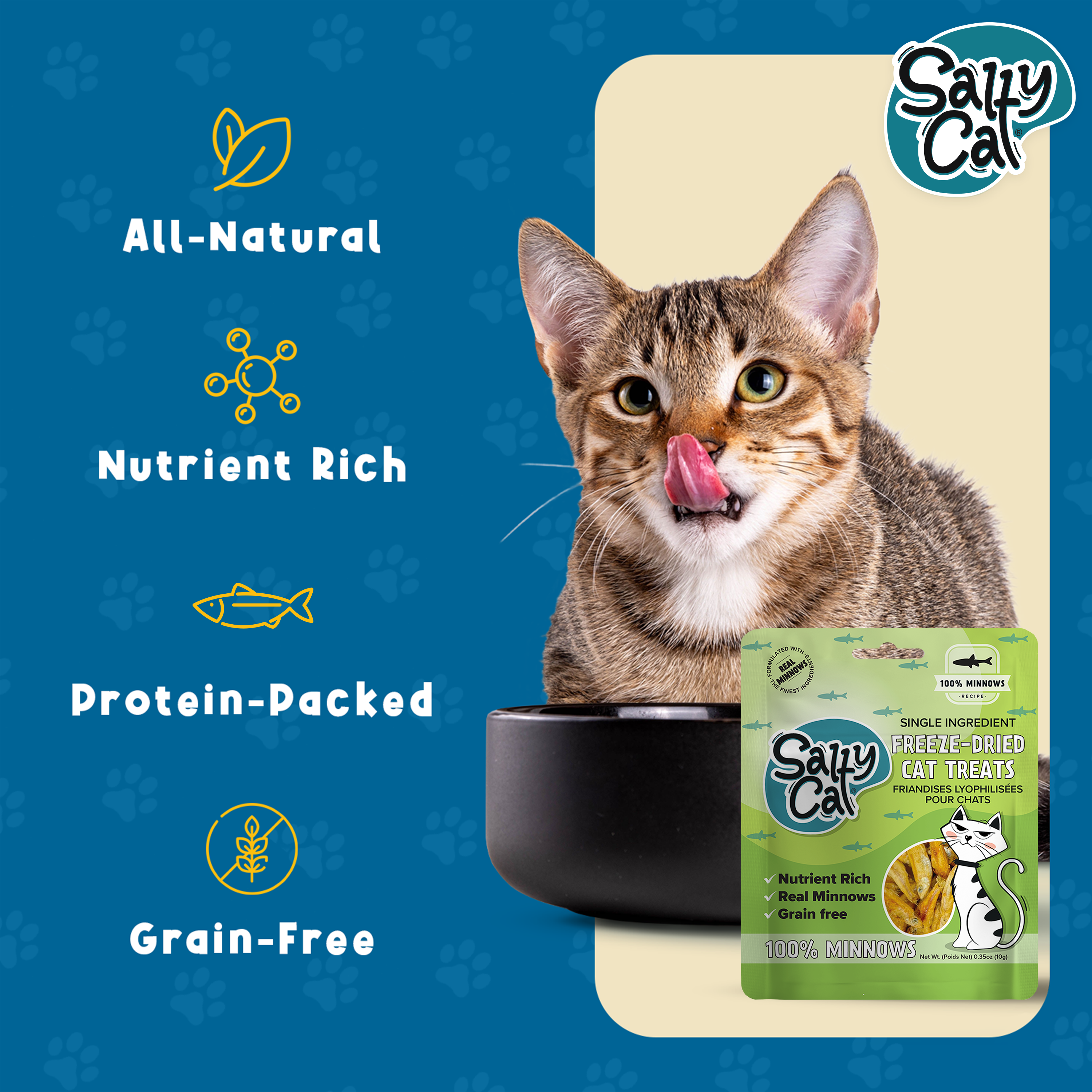 At Salty Cat, we believe simple is better. Our Natural Freeze-Dried Minnow Cat Treats deliver real, whole-food nutrition in every bite—with no grains, no fillers, and nothing artificial. Just clean, crunchy seafood your cat will go wild for.